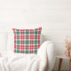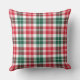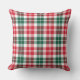 Seasonal Christmas throw pillow design features a rustic Scottish tartan plaid pattern in a festive red, hunter green, and white colour scheme.