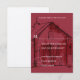 This wedding invitation rsvp reply card features a watercolor red barn on a red background. It's perfect for a rustic wedding that has some modern flair.