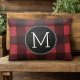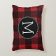 Rustic Red & Black Buffalo Plaid Pattern Monogram Decorative Cushion