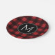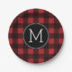 Rustic Red Black Buffalo Plaid Pattern Monogram Paper Plate