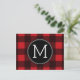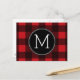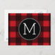 Rustic Red Black Buffalo Plaid Pattern Monogram Postcard