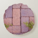 This round pillow design features a close-up photo of an outdoor pathway of red brick pavers with weeds growing through the spaces.It can add a conversation piece to outdoor furniture, a sunroom or even a manacle or she shed. Click customise to add text in a typeface style, size, and colour you like.