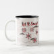 Rustic Red Buffalo Plaid Snowflakes on Birch Two-Tone Coffee Mug. The white birch background reminds me of my Grandfathers yard at Christmas time. The red buffalo plaid snowflakes with "Let it Snow" look fantastic together, like you are sitting in your Grandparents back yard.