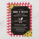 Rustic Red Gingham Sunflowers Baby-Q Shower Invitation