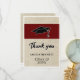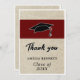 Rustic Red Graduate Cap Graduation Thank you Card. Graduation thank you card with graduation cap, text Congratulations, a name of the graduate. The text is on a beige rustic background. Personalise with your text on the front and on the backside.