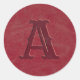 Rustic Red Leather Texture Monogram Initial Classic Round Sticker