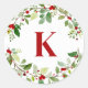 Rustic Red Monogram Holly Leaves Berries Christmas Classic Round Sticker