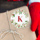 The sticker design features a festive holiday wreath surrounding a bold monogram in red. The wreath is decorated with watercolor-style green leaves and vibrant red berries, creating a cheerful and traditional Christmas look. The central monogram can be customised with your initial, adding a personal touch for each recipient. Ideal for holiday gift labelling or envelope sealing.