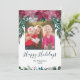 Rustic Red Pink Poinsettias Greenery Boho Photo Holiday Card