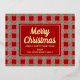 Rustic Red Plaid Merry Christmas Gold Foil Holiday Postcard