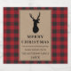 Rustic Kraft Red Buffalo Plaid Reindeer Merry Christmas Liquor Bottle Label