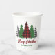 Rustic Red Plaid Merry Christmas Trees Party Paper Cups