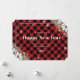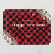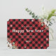 Rustic Red Plaid Snowflake Botanical New Year Card