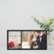 Send a personal message of appreciation and gratitude with the country chic Rustic Red Poinsettia Woodland Winter Wedding Thank You Photo Card. Suitable to use for gifts received after a casual yet classy woodsy inspo December bridal shower, engagement party or marriage ceremony and reception. Customise it with your own names, event date and personal picture. This charming custom woods theme thank you photocard features a quaint digitally enhanced floral photograph of a red Christmas poinsettia flower blossom, natural wood slices with the words THANK YOU burned on it, brown pine cones and bridal veil with a white satin background.