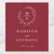 This tasteful and classic custom wine label design conveys an elegant look for your wedding or engagement celebration. A simple open laurel wreath of sketched leaves surrounds the monogram initial of the bride and groom. The elegant yet simple text template is ready to personalise with the bride and groom's names and wedding date. Shown here in rustic red, this design is available in a variety of popular colour choices.