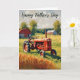 This nostalgic card for Father's Day features a retro-style picture of a red tractor in a field. With 'Happy Father's Day' at the top, the rustic card is ideal for vintage tractor enthusiasts. Full of country charm, the card is blank inside for your own message.