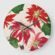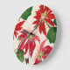 Rustic Red Watercolor Poinsettia Floral Greenery Large Clock