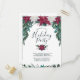 This rustic, boho design features a beautiful cascading watercolor bouquet of vintage burgundy red and white poinsettias along with small berries and lush winter foliage on the front at the top, including eucalyptus greenery and evergreen boughs, in shades of teal green with subtle gold detailing. Below the poinsettias is the text, "Please join us for a Holiday Party" in popular serif and calligraphy script typography for a hand-lettered look in dark teal green, followed by customisable text for the party details and more greenery and berries at the bottom. The back of the postcard features customisable return address and message lines. You can personalise this card by changing the text in the product template. You can personalise this item by changing the text in the product template.