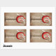 Rustic Red Wine Glass Script 70th Birthday Rectangular Sticker. The design has an abstract red wine glass with an age number in it and the age on the background in white colour. You can change the age. The background is rustic beige old paper print. Great for a woman or a man who celebrates the seventieth birthday.