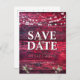 Rustic Red Wood String Lights Wedding Save The Dat Announcement Postcard
