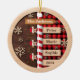 Celebrate the joy of family with this personalised Christmas ornament featuring a charming mix of rustic wood and buffalo plaid patterns. Perfect for families, this ornament allows you to add your family’s name, individual members' names, and the year, making it a beautiful keepsake for the holiday season. The playful reindeer, festive snowflakes, and cosy design make this a wonderful addition to any tree
