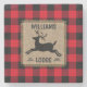 Add a touch of rustic to your farmhouse décor with this holiday stone coaster. This design features a black reindeer on tan faux burlap framed with red and black buffalo plaid. Above the reindeer is your family name and below the word "Lodge" and year your family was established in black typography for you to personalise. Designed by artists ©Tim Coffey and Susan Coffey.