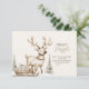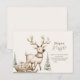 Celebrate a winter baby shower with this adorable woodland invitation, featuring a soft beige reindeer pulling a wooden sleigh full of presents through a snowy forest. Neutral frosted firs and minimalist snowfall details create a serene, gender-neutral scene perfect for cosy holiday gatherings. A charming blend of rustic warmth and Scandinavian simplicity.