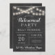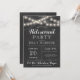 Rustic retirement party invitation featuring string lights and a combination of script and open face typography on a chalkboard background. Perfect for men's or women's retirement celebration. For further customisation, please click the "Customise it" button and use our simple design tool to modify this template.