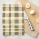 Rustic Retro Beige Brown Textured Plaid Pattern Tea Towel
