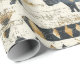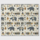 Bold tribal rhino pattern wrapping paper featuring distressed black rhinoceros silhouettes paired with geometric mudcloth-style motifs in warm tan and charcoal on a textured beige background. A rugged, earthy design ideal for safari enthusiasts, boho decor lovers, and wildlife-inspired style fans.