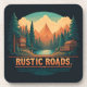A nostalgic graphic design reminiscent of classic adventure games, featuring the text "Rustic Roads" in a vintage, pixelated style. The colour palette evokes a sense of adventure and exploration, inviting viewers to embark on a journey through pixelated landscapes.
