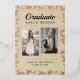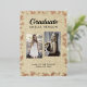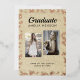 Rustic Rococo Graduate Photo Collage Graduation Foil Invitation. Rose gold foil rococo pattern on the front and black rococo pattern on the backside. The background is a beige rustical print. Add 2 photos on the front - you can add before and after photos.