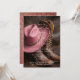 A beautifully composed image capturing the essence of a country wedding, featuring a pair of finely detailed brown cowboy boots paired with a soft rose-coloured cowboy hat. Set against a rugged leather backdrop; also a leather texture on the back of the card, the scene evokes charm, tradition, and western elegance—perfect for the modern bride or groom who’s bringing a little country flair to their big day.