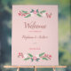 This wedding sign features rustic wildflower bunch motifs, personalizable with couple names, date and additonal text, in handwriting style font for a sweet, romantic wedding aesthetic.