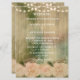 An Elegant rustic wedding invitation with wood background, soft pink roses, and a string of lights. This wedding invitation is part of a complete set,