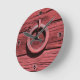 Rustic Rural Red Wood Wall Iron Ring Clock