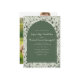 Invite your guests with timeless, natural elegance using this sage green arch wedding invitation. The front features a soft botanical pattern of watercolor leaves surrounding a deep sage arch panel, creating a modern yet organic frame for your wedding details. A blend of romantic script and clean serif typography adds a warm, sophisticated touch.