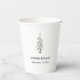 Casual wedding reception paper cups, with a sage green pine tree and customisable typography design. A rustic addition to your wedding reception refreshments.