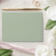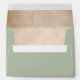 Create your own beautiful sage green envelopes lined with a rustic parchment paper texture. This simple DIY template envelope is easy to add personalised names to in an elegant calligraphy script along with return address details below on the back flap. Should you personalise this elegant stationery item further, there are additional creative options that you can add. This includes an original watercolor vineyard inside liner art, gold grapevine ornaments, and svg embellishments that you can chose any colour for. Feel free to reposition the address information to the front side if you'd like to free up the backflap space, and even change the traditional typography to what best suits your fancy. These the unique vintage design can complement vineyard weddings, a bridal shower, a country wine tasting birthday party, or other big day. Enjoy! Category: modern vineyard wedding return address envelopes; winery wedding envelopes; and simple 5x7 invitation envelope template. Rustic party theme colours: sage green, tan, light brown, ivory cream, beige, antique champagne gold, and white.