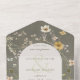 AVAILABLE WITH OR WITHOUT A QR CODE. This design features a soft wildflower frame around a cream oval on an emerald green background. Personalised All-In-One invitations are a unique combination of both a beautifully printed custom invitation with an easy to tear off perforated RSVP postcard. And they are so easy to use! You simply fold, then seal the back flap with the three included clear stickers, and mail. And when your guests receive your custom invite, they just tear the perforated RSVP Card off and drop it back in the mail to you!