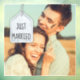Rustic Scrapbook Just Married Photo Wedding Square Window Cling