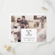 This rustic script 4 photo template save the date postcard is perfect for a country wedding. The simple and modern black and white design features unique whimsical handwritten calligraphy lettering with a contemporary minimalist boho style. Customisable in any colour. Keep the design minimal and simplistic, as is, or personalise it by adding your own graphics and artwork.