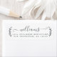 Chic, modern and simple family name return address label features your last name in off-black elegant handwritten script calligraphy on a white background with a stylish touch of rustic foliage. Simply add your name and address. Exclusively designed for you by Happy Dolphin Studio. If you need any help or matching products please contact us through our store chat!