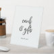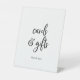 This rustic script cards and gifts pedestal sign is perfect for a country wedding or bridal shower. The simple and modern black and white design features unique whimsical handwritten calligraphy lettering with a contemporary minimalist boho style. Customisable in any colour. Keep the design minimal and simplistic, as is, or personalise it by adding your own graphics and artwork. The line of text at the bottom of the sign can be personalised with the date, the names of the bride and groom, or a short message like "Thank you". This sign can be used for a wedding or any event or party.