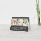 Folded chalkboard style "Love and Thanks" wedding thank you card template features three photos*, as well as custom text and a message that can be personalised. Handwritten white chalk appearance on a textured black chalkboard style background image.