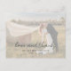 Modern photo wedding thank you postcard featuring a simple design with "love and thanks" in a rustic style script typography along with your names and wedding date over your favourite picture with an opaque overlay. This elegant thank you postcard with a minimalist layout is great for any style of wedding.