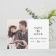 This rustic script photo save the date card is perfect for a country wedding. The simple and modern black and white design features unique whimsical handwritten calligraphy lettering with a contemporary minimalist boho style. Customisable in any colour. Keep the design minimal and simplistic, as is, or personalise it by adding your own graphics and artwork.
