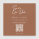Less hassle, no missing mail when you invite your guests online with a QR code that sends them directly to your wedding website for additional details. The design features a minimalist, rustic terracotta colour creative with a modern very elegant calligraphy Save Our Date script. Easily follow directions for inserting your wedding website URL in the example above. That's all there is to it.