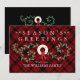 Send warm wishes to friends and family this holiday season with this rustic themed Christmas card. The elegant design features a simple white wreath decorated with gold balls and swirls of holly with red berries on a red and black plaid background. The front of the card reads "Season's Greetings" in white typography. Below it has your name to personalise. The back of the card is black with white script and reads: "Warm wishes for a joyous holiday season and a healthy and happy New Year!"j with a place for your signature. Designed by artist © Tim Coffey.