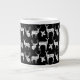 A bright, fun mug for winter for all your winter hot chocolate, coffee, even soup or chilli! This jumbo speciality mug features rustic silhouette white deer, both bucks and does, on a background of black!
